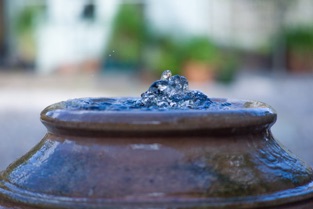 We converted a wonderful old urn into a lovely burbling water feature which Bertie the dog loves!