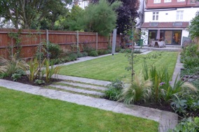 My clients had a long very narrow, dull space. They were desperate to introduce colour and interest into the garden and give the perception of width.