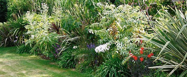 A sheltered one acre country garden by the sea. Originally with a tennis court at the bottom of the garden it offered lots of space for dramatic planting, creating lovely vistas from many angles.