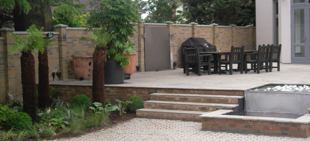 I replaced the old decking with a wider sandstone terrace for entertaining.