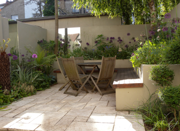 Raising the levels in the garden added interest. Storage space was created under the seats.