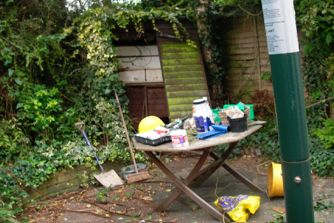 My client had a small, seriously overgrown garden, with broken fences, crazy paving and an old shed.