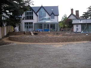 The borders were planted with hot colours of oranges, blues, purples and reds with a beautiful specimen red Acer planted toward the house for maximum impact.